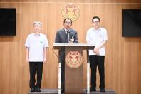 นายศุภชัย ใจสมุทร ส.ส. พรรคภูมิใจไทย พร้อมด้วย นพ.โอภาส การย์กวินพงศ์ ปลัดกระทรวงสาธารณสุข และ นพ.จเด็จ ธรรมธัชอารี เลขาธิการสำนักงานหลักประกันสุขภาพแห่งชาติ (สปสช.) ร่วมกันแถลงข่าว