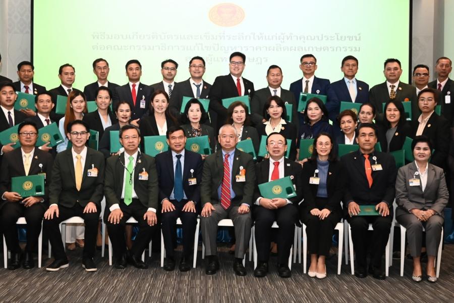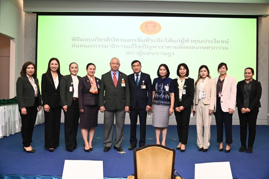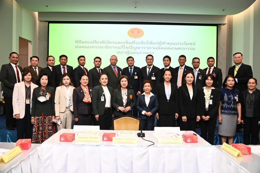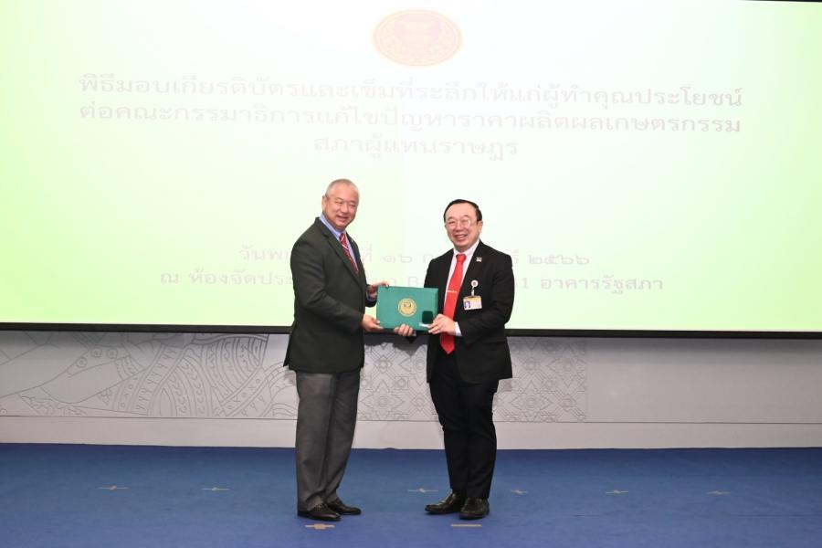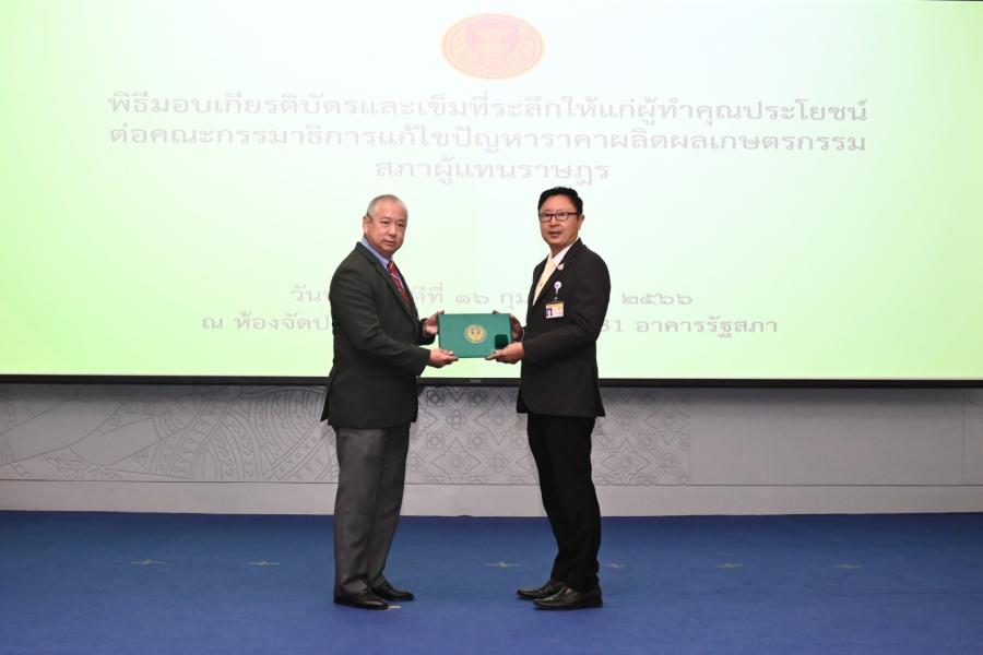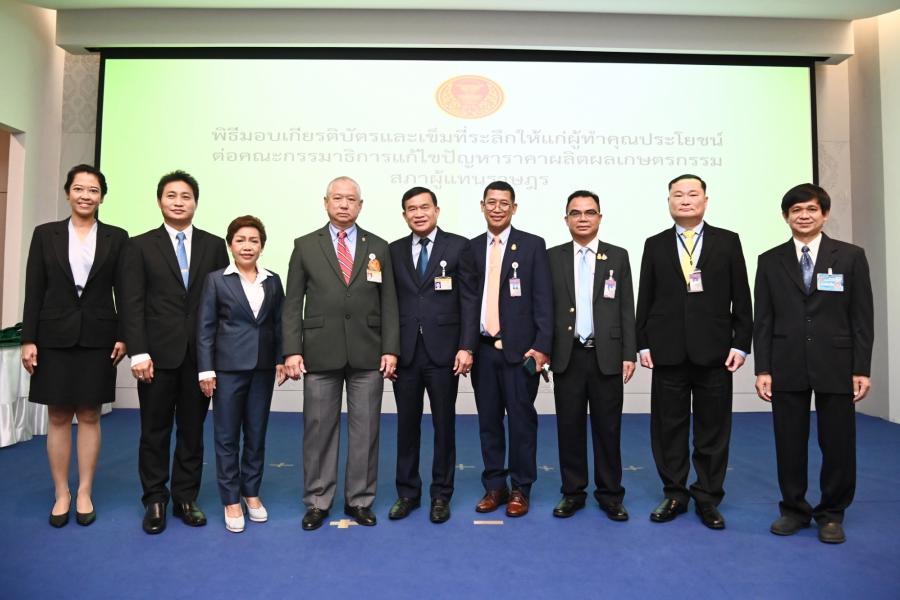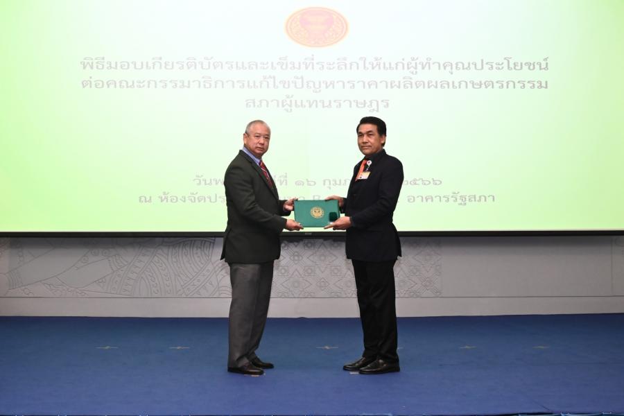 จากนั้น ประธานคณะ กมธ.มอบเกียรติบัตรและเข็มที่ระลึกให้แก่ผู้ทำคุณประโยชน์ต่อคณะ กมธ. แก้ไขปัญหาราคาผลิตผลเกษตรกรรม