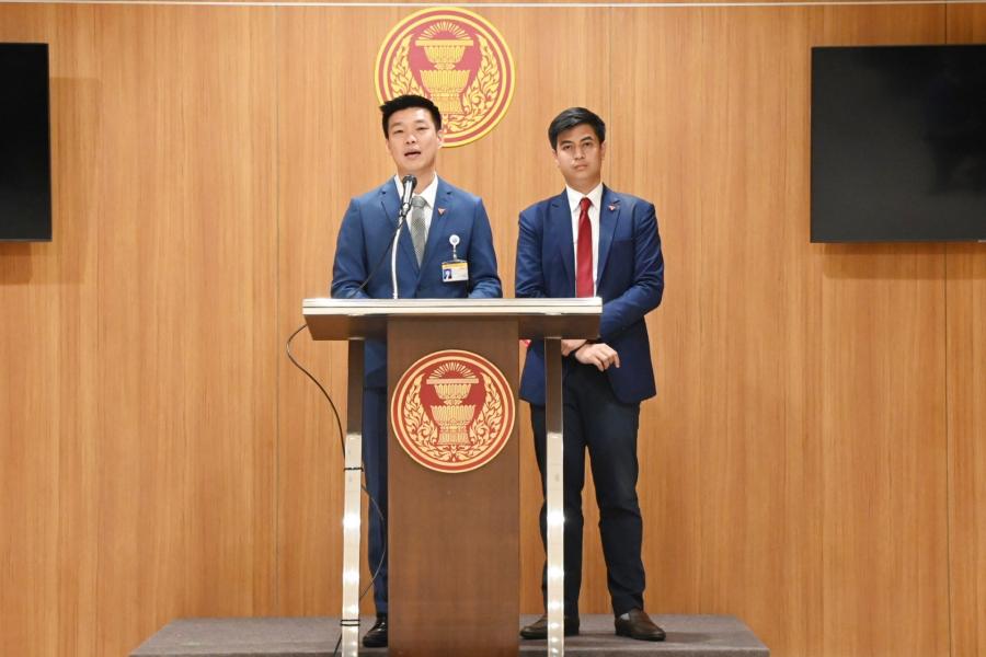 นายณัฐพงษ์ เรืองปัญญาวุฒิ ส.ส.พรรคก้าวไกล แถลงข่าวภายหลังที่ประชุมวุฒิสภาลงมติไม่ให้ความเห็นชอบผลการลงมติของสภาผู้แทนราษฎรในญัตติขอให้สภามีมติส่งเรื่องที่มีเหตุสมควรจะให้มีการออกเสียงประชามติให้คณะรัฐมนตรีดำเนินการ