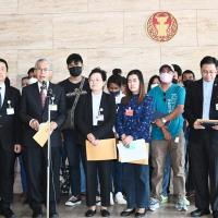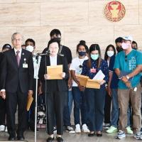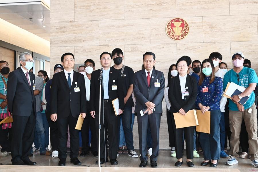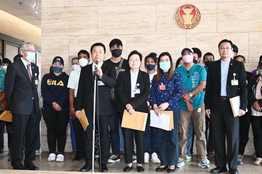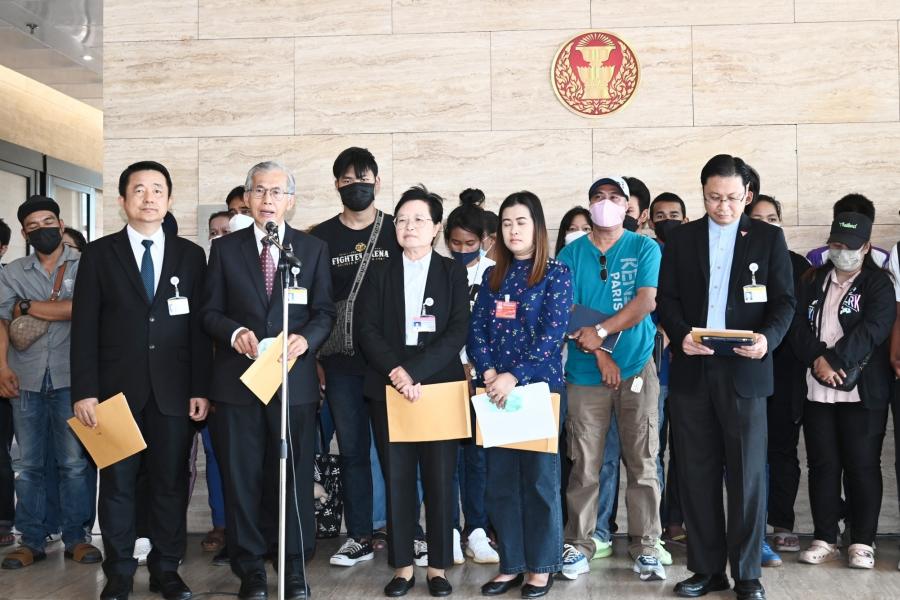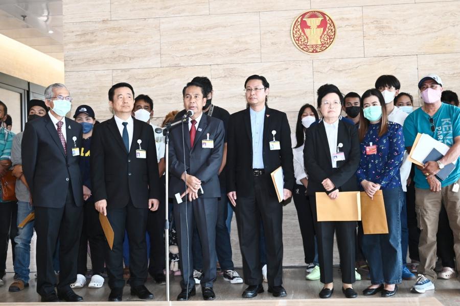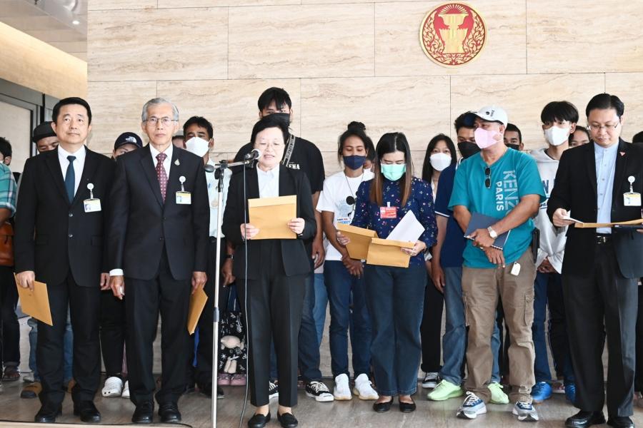 นายบัญญัติ เจตนจันทร์ และนายพิสิฐ ลี้อาธรรม ส.ส.พรรคประชาธิปัตย์ นายสุทิน คลังแสง ส.ส.พรรคเพื่อไทย นายณัฐวุฒิ บัวประทุม ส.ส.พรรคก้าวไกล และ น.ส.ผ่องศรี ธาราภูมิ โฆษกประธานสภาผู้แทนราษฎร รับยื่นหนังสือจาก น.ส.สมหญิง รัตนุ่มน้อย ตัวแทนผู้ได้รับความเดือดร้อนจากคดีเช็ค
