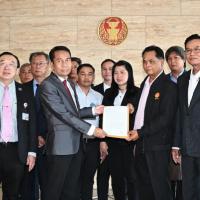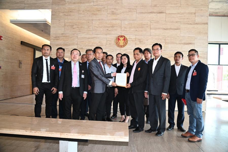 นายสุทิน คลังแสง และ นายกิตติศักดิ์ คณาสวัสดิ์ ส.ส. พรรคเพื่อไทย รับยื่นหนังสือจาก นายประศาสตร์ ธุระนิตย์ นายกองค์การบริหารส่วนตำบลโคกก่อ อ.เมืองมหาสารคาม จ.มหาสารคาม และคณะ เรื่อง เรื่อง ขอการสนับสนุนโครงการโรงไฟฟ้าชุมชนชีวมวลเพื่อประชาชน