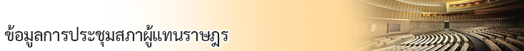 images/parliament_2019/icon/parliament_24.png  การประชุมสภาผู้แทนราษฎร ชุดที่ 26 ปีที่ 2 ครั้งที่ 18 (สมัยสามัญประจำปีครั้งที่หนึ่ง) (28/08/2567)