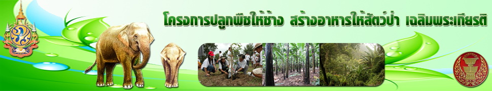 ยินดีต้อนรับเข้าสู่เว็บไซต์โครงการปลูกพืชให้ช้าง สร้างอาหารให้สัตว์ป่า เฉลิมพระเกียรติ (18/05/2555)