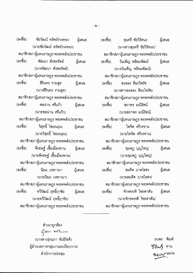 ร่างพระราชบัญญัติคุ้มครองการดำเนินงานขององค์การโทรคมนาคมทางดาวเทียมระหว่างประเทศ (ฉบับที่ ..) พ.ศ. .... (นายวิชาญ มีนชัยนันท์ กับคณะ เป็นผู้เสนอ) |
