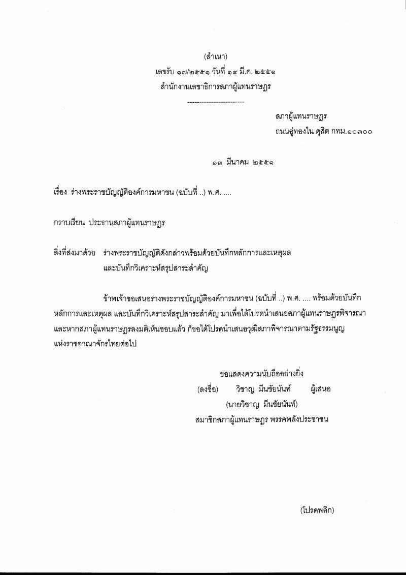 (6.10) ร่างพระราชบัญญัติองค์การมหาชน (ฉบับที่ ..) พ.ศ. .... (นายวิชาญ มีนชัยนันท์ กับคณะ เป็นผู้เสนอ) (เวอร์ชั่นที่ 1) |