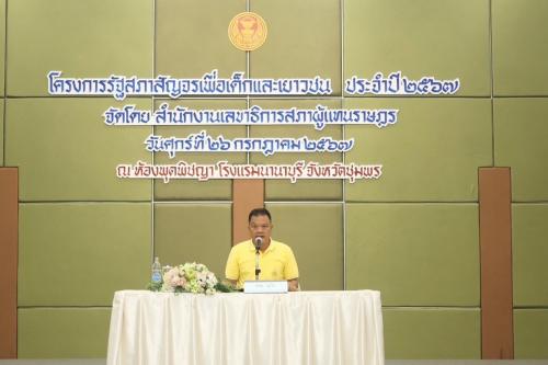 พิธีเปิดโครงการรัฐสภาสัญจรเพื่อเด็กและเยาวชน ประจำปีงบประมาณ พ.ศ. 2567 ภาคใต้ ณ จังหวัดชุมพร