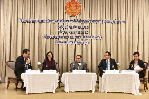 ภาคบ่ายของการสัมมนาเสริมสร้างศักยภาพของส่วนราชการสังกัดรัฐสภา เพื่อรองรับการเปลี่ยนแปลงในอนาคตเป็นการอภิปราย เรื่อง “การพัฒนาประสิทธิภาพการบริหารทรัพยากรบุคคลในอนาคต”