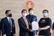 นายชลน่าน ศรีแก้ว นายสิระ เจนจาคะ นายสมคิด เชื้อคง และนายรังสิมันต์ โรม สมาชิกสภาผู้แทนราษฎร รับยื่นหนังสือจาก นายพริษฐ์ ชิวารักษ์ ตัวแทนคณะราษฎร และคณะ