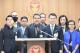 นายอุบลศักดิ์ บัวหลวงงาม รองประธานคณะ กมธ. วิสามัญพิจารณาศึกษาปัญหาอุปสรรคในการจัดบริการสาธารณะ กิจกรรมสาธารณะ และหาแนวทางในการแก้ไขเรื่องการถ่ายโอนภารกิจด้านการพัฒนาแหล่งน้ำให้แก่องค์กรปกครองส่วนท้องถิ่น คนที่หนึ่ง พร้อมด้วย นายจาตุรงค์ เพ็งนรพัฒน์ รองประธานคณะ กมธ. คนที่เจ็ด และนายอำนาจ วิลาวัลย์ โฆษกคณะ กมธ. แถลงข่าวสรุปผลการดำเนินงานของคณะอนุ กมธ.