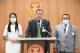 นพ.สุกิจ อัถโถปกรณ์ ที่ปรึกษประธานสภาผู้แทนราษฎร พร้อมด้วย น.ส.โสมอุษา บูรณะเหตุ รองเลขาธิการสภาผู้แทนราษฎร และน.ส.สิตาวีร์ ธีรวิรุฬห์ ผู้อำนวยการสำนักสารสนเทศ แถลงข่าว