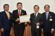 นพ.สุกิจ อัถโถปกรณ์ ที่ปรึกษาประธานสภาผู้แทนราษฎร รับยื่นหนังสือจากคณบดีคณะนิติศาสตร์ จาก ๔ สถาบัน