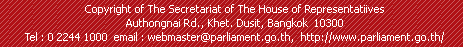 สำนักงานเลขาธิการสภาผู้แทนราษฎร ถนนอู่ทองใน ดุสิต กรุงเทพฯ 10300